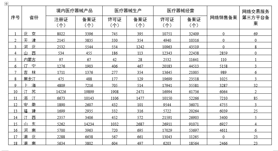 各省醫(yī)療器械許可備案相關(guān)信息(截至2021年12月31日)