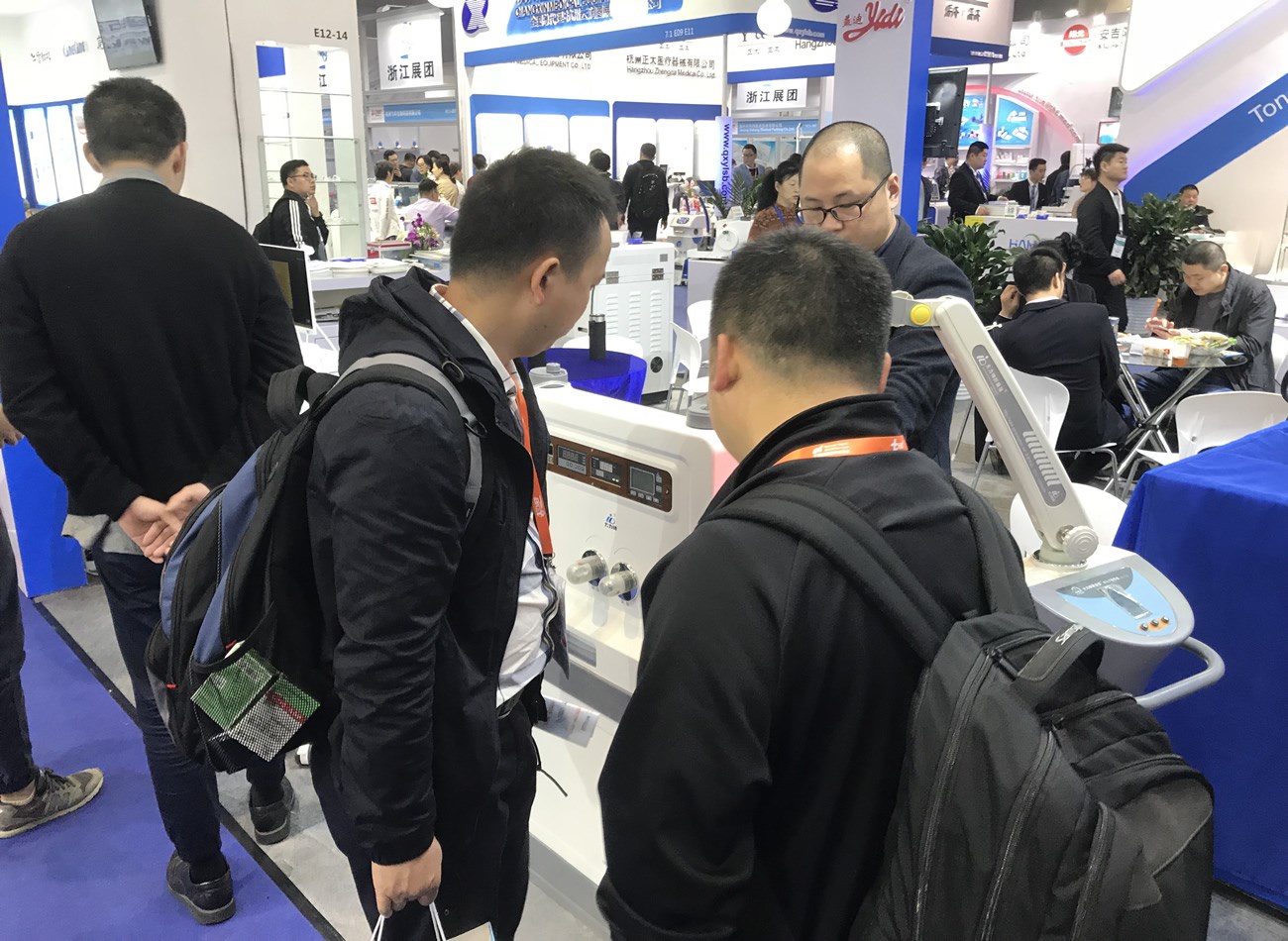 第79屆中國國際醫療器械(春季)博覽會、第26屆中國醫療器械設計與制造技術(春季)展覽會于2018年4月11日-4月14日在國家會展中心(上海)隆重舉行。本屆CMEF醫博會以“醫療數字化時代”為主題,來自全球28個國家的4100家展商參會,萬余款產品精彩亮相。每年兩度的春秋國際醫療展是醫療界最具規模,最富宣傳效應的年度盛會,是公司產品和品牌對外展示的最佳平臺,早在一個月之前公司相關部門就進行了周密部署,精心謀劃。營銷總部、雀啄灸事業部等部門主管帶隊親征,強大陣容精彩亮相。公司分管營銷的副總經理親臨到會協作指導,相關地區業務經理鼎力配合,確保展會圓滿成功。 公司自主研發生產的高頻肛腸治療儀、大力神肝康保、內窺鏡檢查數字攝像系統、大力神雀啄灸、超聲霧化熏洗儀、結腸水療儀等產品悉數參展。